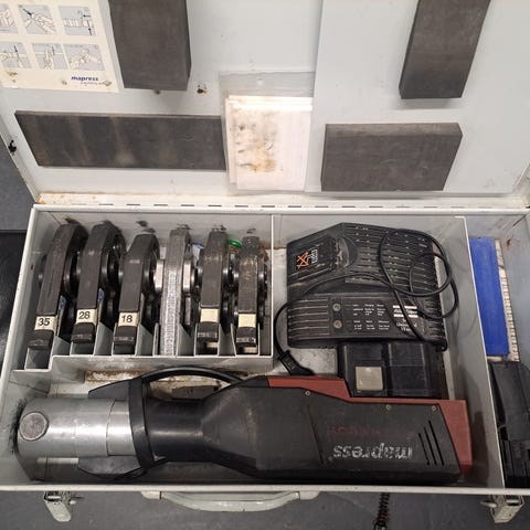 Ylimääräiseksi jääneitä Mapress puristusosia.