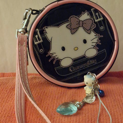 Kaupan päälle saat halutessasi viimeisessä kuvassa näkyvän täysin käyttämättömän lituskan Hello Kitty -hahmon / maskotin esim. reppuun tai käsilaukkuun kiinnitettäväksi.