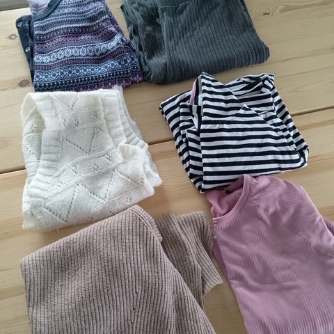 Naisten vaatepaketti. Koko M. Sisältää 4 housut ja 7 yläosa. Lisäykset on mahdollista. Halvalla vain 25€. Voin lähettää