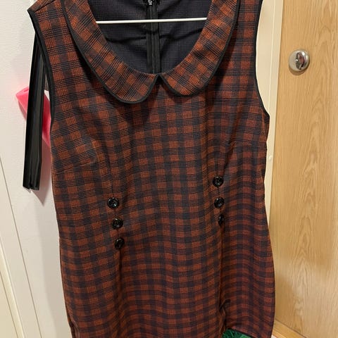 Myydään erittäin hyväkuntoinen ja laadukas, mustavalkoinen mekko. Jonkun itse tekemä, vintagehenkinen vähintään, jos ei aidosti vanha. Koko paras noin L-koolle, mutta sopii myös XL-koolle (kuvassa). Kaikai noin 60cm. Mukana kangasvyö.