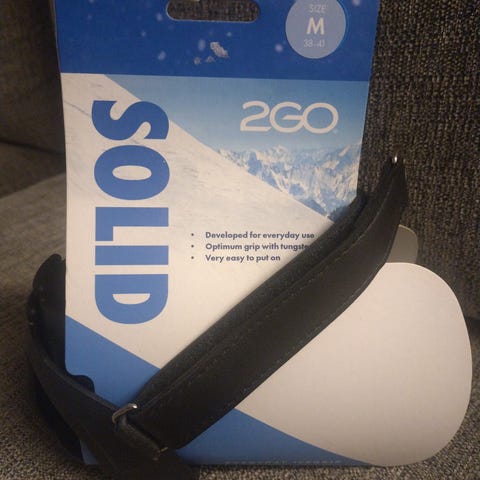 Koko L, kengän koko 45- 50. Kiinnitetään kenkiin tarrahihnalla.