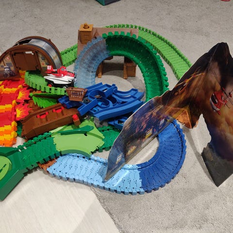 FLEXTREAME autorata rakennus setti, sisältää yhden leluauton ja autorata rakennus osia. Rata on uuden veroinen, on ollut todella vähän käytössä. Paristoja ei ole mukana.