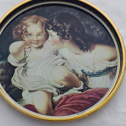 Vanha olut tarjotin. Kuvan perusteella valmistettu 1970-1980-luvun alkupuolella. Kuvapuolella teksti Three Towns Göteborg Stockholm Malmö sekä kyseisten kaupunkien vaakunat.