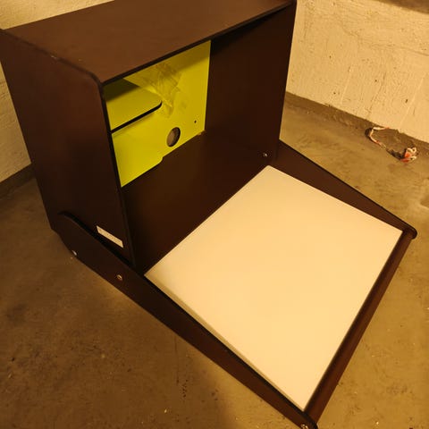 Kuvan mukainen kaappi alunperin pesukoneelle tarkoitettu, mutta aamiaiskaappi ja käytetty. Sisällä tällä hetkellä irrallaan Elfa korihyllykkö, mutta ajatus oli tehdä hyllyt. Nyt muuton takia en enää kaappia tarvitsekaan vajaan vuoden käytössä olon jälkeen.