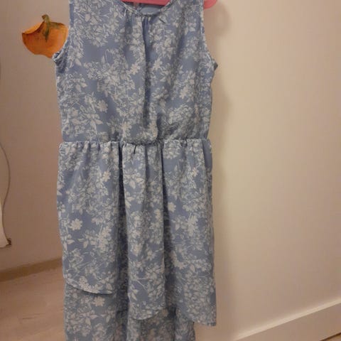 Hyvässä kunnossa oleva mekko koossa 134 cm. Farkkukankaan näköinen mekko mutta kevyt kangasta.
