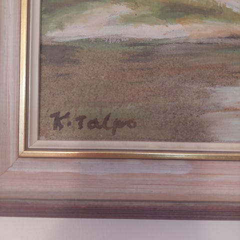 Taidemaalari Kauko Talpon maalaus ilmeisesti 40 -luvulta. Koko 55 x 65 cm kehyksineen. Nouto läheltä Vuosaaren metroasemaa. Ostetun taulun voin tuoda edullisesti pääkaupunkiseudulle.