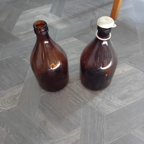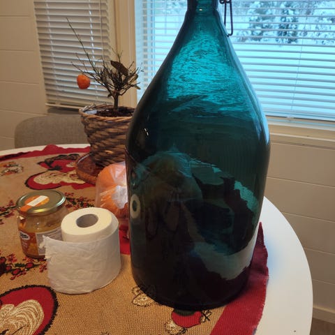 Isompi wissy-pullo (tyhjä) kippistelineellä.