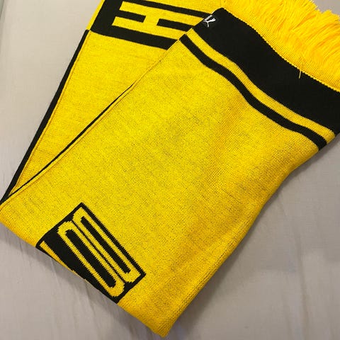 Laulaja Rihannan Pumalle suunnittelema huivi. Pituus noin 3 metriä. Huivi on täysin käyttämätön. Tummansininen-valko-keltainen.