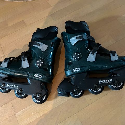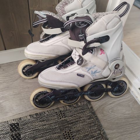 Siistit rullaluistimet kokoa 40 1/3. Ei juurikaan kulumaa renkaissa. Näissä ei ole jarrupalaa.