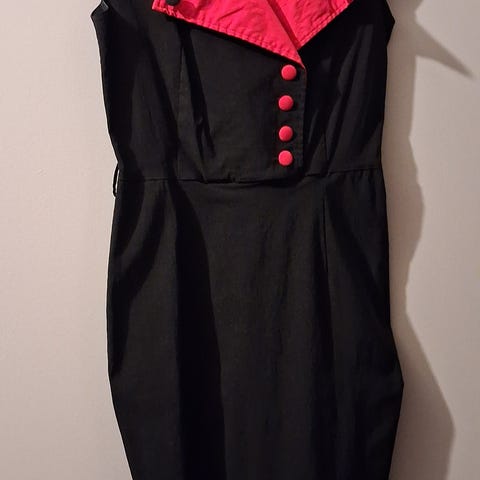 Puolipitkä ruskea Hell Bunny Vixen-mekko kokoa 4XL (vastaa noin kokoa 52). Vintage-tyylinen, vaalea kaulus, musta rusetti, lyhyet hihat, joissa vaaleat käänteet, mekko joustavaa kangasta. Takana vetoketju, helma kellomallinen. On uutena ostettu, mutta jäänyt harmillisesti käyttämättä, vain soviteltu ja laput poistettu. Mekko on mielestäni ihana, istuu hyvin päälle, mutta ei vaan tullut tilaisuutta käyttää.