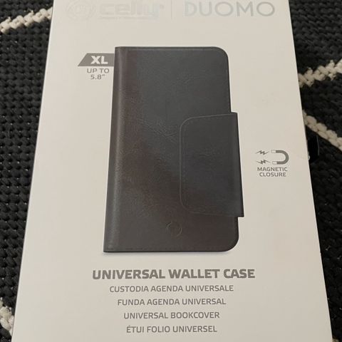 Musta Celly kännykän suojakotelo sisätaskuilla ja magneetti sulkimella.