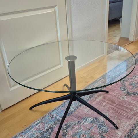 Lasinen taso pyörillä.