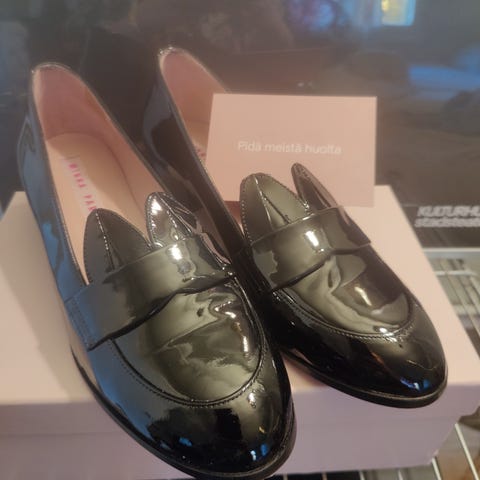 Minna Parikan Regina kiiltonahkakengät koossa 40. Uudet ja käyttämättömät. Pohjissa edelleen suojatarrat. Mukaan alkuperäinen laatikko ja suojapussi.