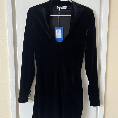 Joustavaa (75 puuvillaa ja 25 polyesteriä) oleva samettimekko/tunika. Rinnsn alapuolella on kuminauha. Malli imartelee vsrtaloa ja pääniellä on kaunis lrikkaus.Kokolappu on leikattu pois, mutta sitä on käyttänyt s-kokoinen. Nouto tai postitus.