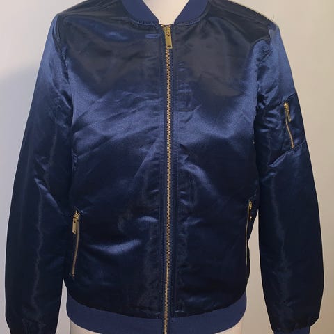 Sininen bomber takki, koko M. Hinta 25€.