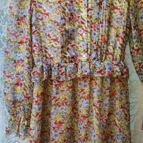 Kevyt ja hyvin laskeutuva pitkä mekko, hihansuissa nappi.