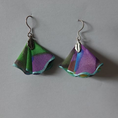 Uudet, käyttämättömät korvikset käsin laminoitua silkkiä. Valmistajalla ei tällä hetkellä ole korviksia myynnissä netissä.