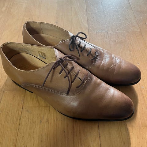 Nupukkinahkaa. Myös sisäpuoli nahkaa. Kengän kannassa ruskeaa puuta.