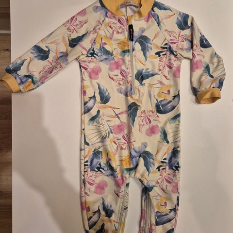 Vaaleanpunainen splash about UV puku. Koko merkitty 1-2y vastaa mielestäni n. 86-92cm. Vaalean kankaan osuus jo vähän nyppyinen. Ehjä. Selässä kiinnitys neppareilla. Pitkät hihat ja puntit.