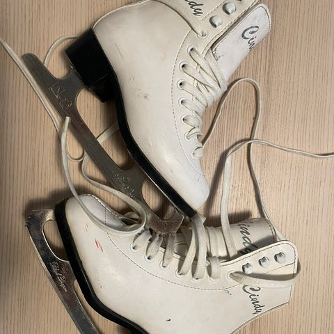 Siistit yhdellä pidetyt luistimet koko 30. Kärjissä osumajälkeä. Piikit hiottu pois, suht hyvässä terässä seuraavalle luistelijalle. Pohjallisen sisämitta on 18,8 cm.