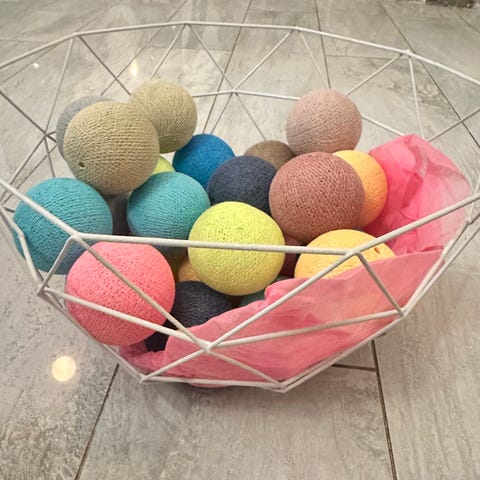 Kuvan askartelupalloja myytävänä. Erikokoisia ja erimateriaalisia. Uudet