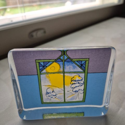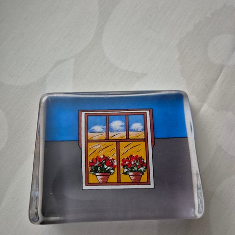 Heljä Liukko-Sundström lasikortti ”Katson maalaismaisemaa”.