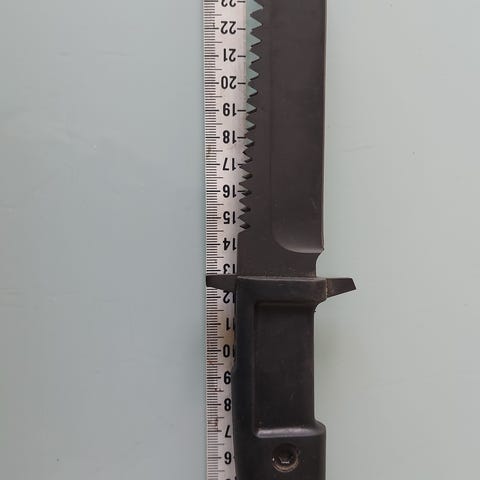 Puukko käytetty mutta kunnossa. Terän pituus 10 cm ja yhteispituus 20 cm.