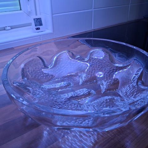 Ruotsalainen Kjell Blomberg on suunnitellut 70 luv. VINETA sarjan. Punainen kulho halk. 21.5 cm. Art Glass Bowl Ruotsi. Virheetön ja siisti.