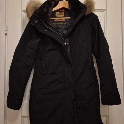 Kevyt Untuvatakki. Parajumpers Super Light downcoat. Malli Irene. Kts. takin infoa (https://www.parajumpers.it/fi/en/women/clothing/puffers/long-puffers/irene---hooded-down-jacket-black-24WMPWPUSL34P610541.html) Kokomerkintä S. Käytetty perussiisti. Mallinukke 36/S kokoa. Olka-helma n.80cm, kai-kai n. 48cm kainalo-hihansuu n.48 cm, kapein kohta vyötäröllä n.43, helma n.52cm. Takissa on 2-suuntainen vetoketjutasku, 4 vetoketjutaskua edessä, kiinteä kiristettävä huppu, logo hihassa, pesty! Ei sovituksia, ei toridiiliä, en tingi. Nouto tarkka aika etukäteen sovitusti ma-pe 10-16 Hki88 tai postitse.