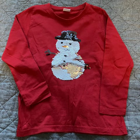 Uusi poikien paita, hauska lumiukko teema, 6-vuotiaan koko. Ostettu USA:sta, 100 % puuvillaa.