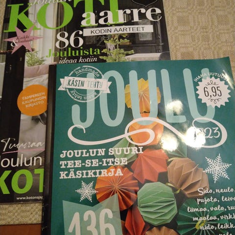 Joulukirja missä ohjeita itse tekoisiin koristeisiin ja muihin joulun ehostuksiin.