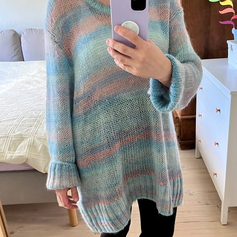 - Kainalosaumasta kainalosaumaan 48 cm, kokonaispituus niskasta helmaan 58 cm