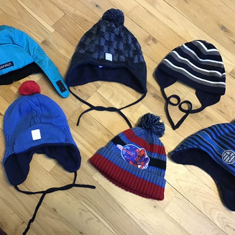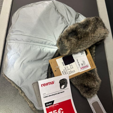 1. Ei merkkiä, 2. Valmistaja Intrade partner oy, fleeceä 3. Reima, toinen naru auennut joskus solmittu uudelleen, ovat vähän erikokoisia. 4. Hello kitty.5. Ja 6. Fredrikson 52 cm ja 54cm, 6€ kpl. 7. Reima 2 kpl samanlaiset. 8. Reima heijastin halki,pysyy kiinni kun neulottu, yksi kahdessa eri kohdassa lanka irronnut ja kulumaa takana. Hyvä malli päähän.