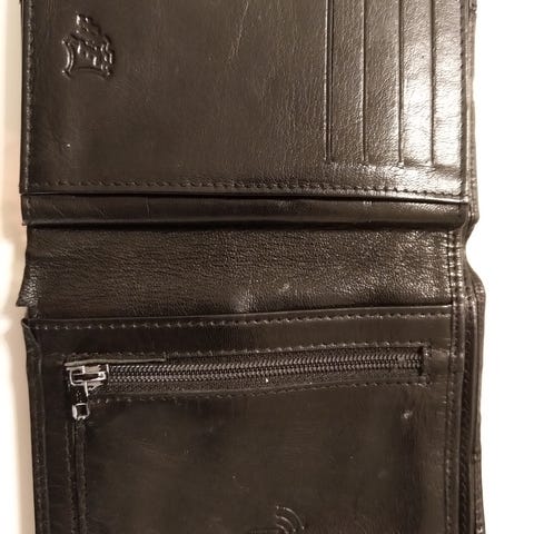 Kolikoille 1 vetoketjullinen lokero lompakon ulkopuolella