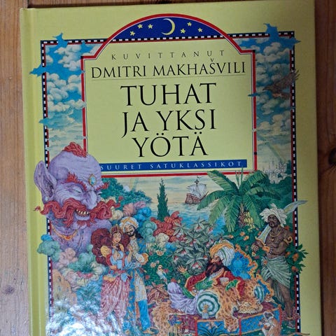 Tuhat ja yksi yötä. Itämaisia satuja. Vähän erilaista lukemista aikuisille, tapahtumarikas kirja, hyvää vaihtelua dekkareille ja murhamysteereille.
