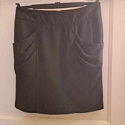Musta, valko pilkullinen mekko. Takana vetoketju. Säädettävät olkaimet.