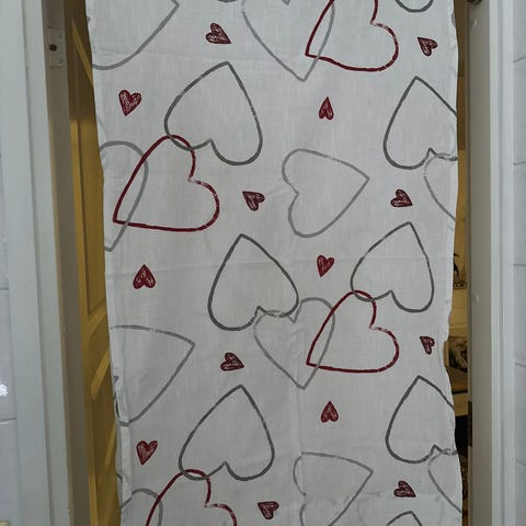 Punaisia paneeliverhoja 4 kpl. Koko 65x220 cm. Hyväkuntoisia