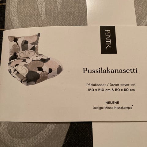 Pentik Harmonia tuplapussilakana 240x220 ja kaksi tyynyliinaa.