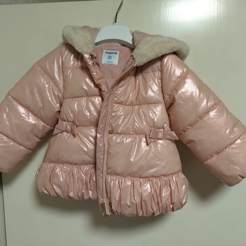 Toppatakki koko 92. Ollaan itse lisätty hihoihin resorit, jotta meni yhden talven enemmän. Siistimpänä takkina pidetty.