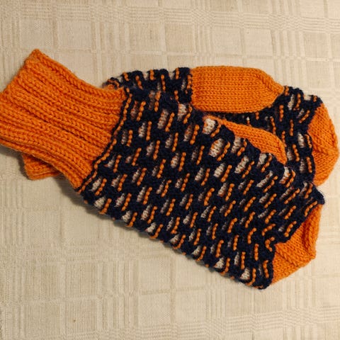Myydään kuvan uudet / käyttämättömät kuvioidut villatumput, koko S/M.
