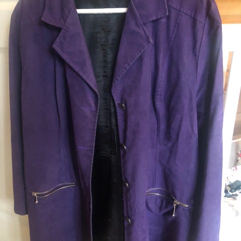 Nahkatakki kokoa 40 Lila Takissa on vuori ja kaksi vetoketjutaskua. Täysin ehjää nahkaa voin postittaa Syyssäähän piristävä väri