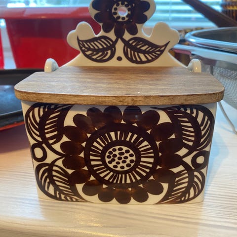 Gunvor Olin-Grönqvistin suunnitelema ja käsinmaalattu Arabian suola-astia. Ehjä ja hyvässä kunnossa.
