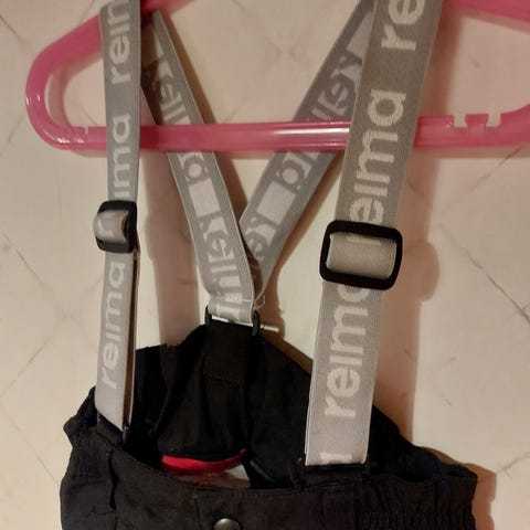 Reimatec toppahousut koko 122. Polvet jo vaalenneet ja kulumaa/pehmentymää, mutta vielä käyttökelpoiset seuraavallekin. Voi olla että vaatii kyllä vaatelaastarit polviin, mutta meillä ainakin vielä piti kosteuden.