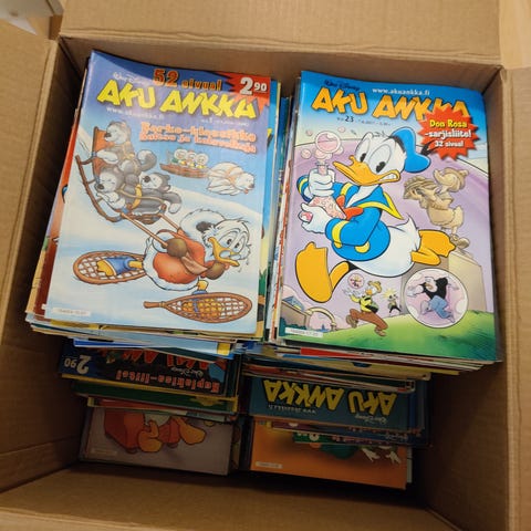 Aku Ankka lehtiä ja kansioita.