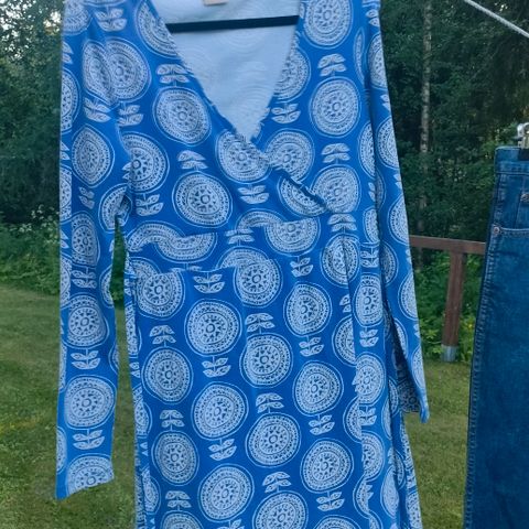Ihana Me&I turkoosin sininen trikoomekko! Mekon sivuissa rypytys ja kuminauhat, joiden avulla voit säädellä hieman helman pituutta. Rypytys tulee kivasti masun kohdalle ja tuo siihen väljyyttä.