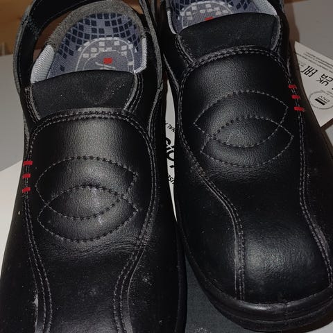 Myydään jalaksen turvakengät. Itse käytin niitä aikanaan ammattikoulussa kokkiluokalla ollessani. Koko varmaan 41. Minulla on jalka kokoa 42 ja on hyvin hintsusti pienet. Kenkiä on käytetty suutarilla korjauksessa kokkiveitsen tiputtua varpaiden kohdalle. Jäljet näkyvät kuvissa.