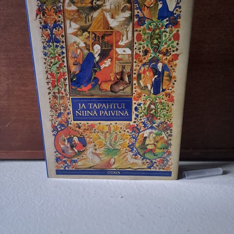 Jouluevankeliumi, kovakantinen kirja jonka kuvittanut Riikka Juvonen.Kirjan sisältö on erinomaisessa kunnossa, kansien kulmissa vain hieman sanottavaa.