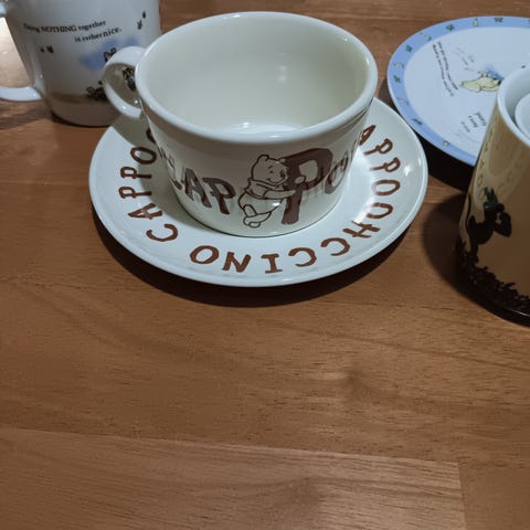 Disney Nalle Puh iso muki kannellinen. Korkeus 13,5cm, suuaukko 8,8cm ja tilavuus 5dl. Pieni hankauma Puhin olkapäässä. Aavistus käytön jälkeä sisällä. Muten kunto moitteeton. Nouto Saimaanharjulta 10km Lappeenrannasta. Voin postittaa mutta postikulut sinulle