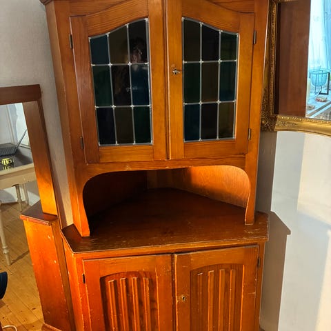 Hieno siisti lyijylasinen astiakaappi tms . Ihan ok kunnossa ja tukeva. Pikaiset kaupat . Nouto raisio omat kantajat mukaan hp 50€