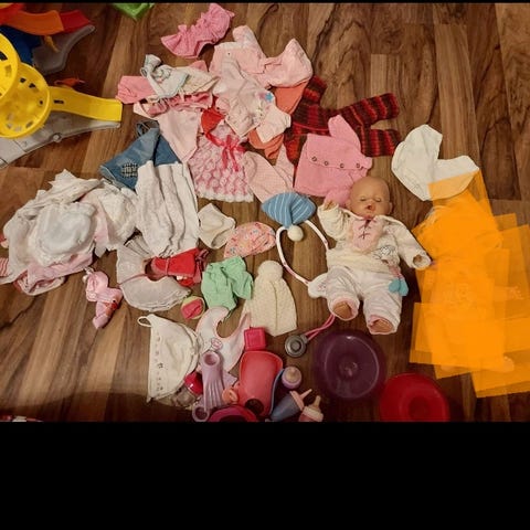 Myydään kuvassa näkyvä pienempi Babyborn nukke jolla pelastusliivit ja räpylät sekä kuvassa näkyvät tavarat. Nukessa ollut uimari toiminto joka ei jostain syystä toimi. Hinta:30€.